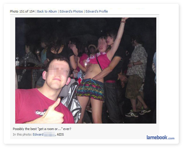 5. Haha, that last picture is hilarious, I feel pride for that “couple” and that now the whole of facebook now know that he has fingered what is probably a part time hooker from the looks of them her. Oh and that he obviously needs quite a lot more practise.