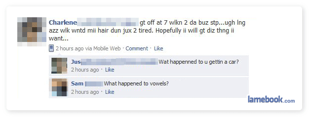People that type like that on Facebook, or ANYWHERE need to be sat in a room with Fargis for a minimum of 72 hours. Just so their ears bleed.