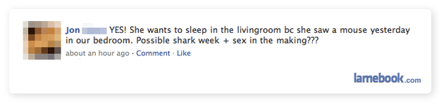 And, Jon, if you want Shark Week + sex, just go out and do it on the couch. There really is no rule saying sex can only occur where you’re sleeping for the night.