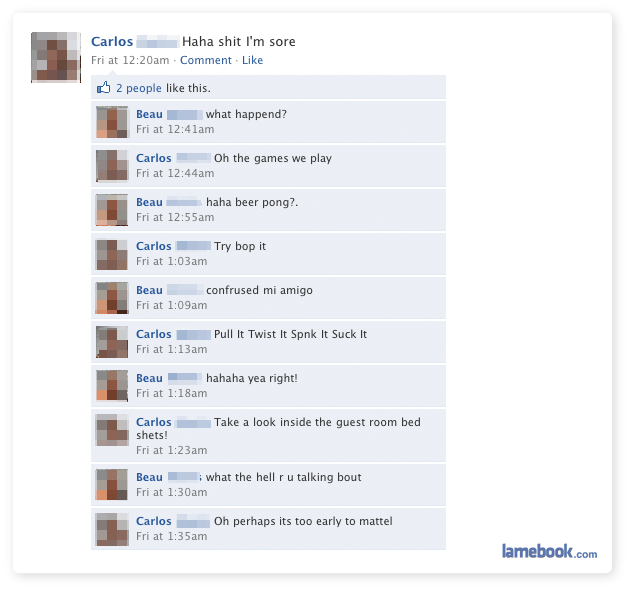 ‘Duncan f8cked me’: A game the whole family can enjoy.