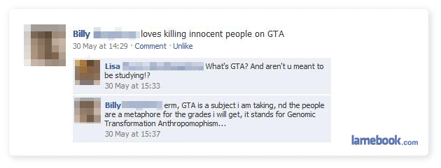 #3: Billy is very good at taking advantage of people. Therefore he doesn’t need to study for he will be able to ride everybody else out while he is beating the hell out of hookers to steal back the money he just gave them.