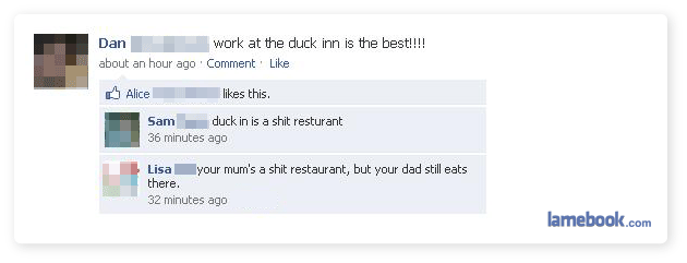 God.. how lame are u on the comments.. just cause it says today on the persons status doesnt mean that it was posted TODAY on there profile… it could of been from a while ago and submitted to lamebook and then reviewed and then posted on here….. FAIL!!