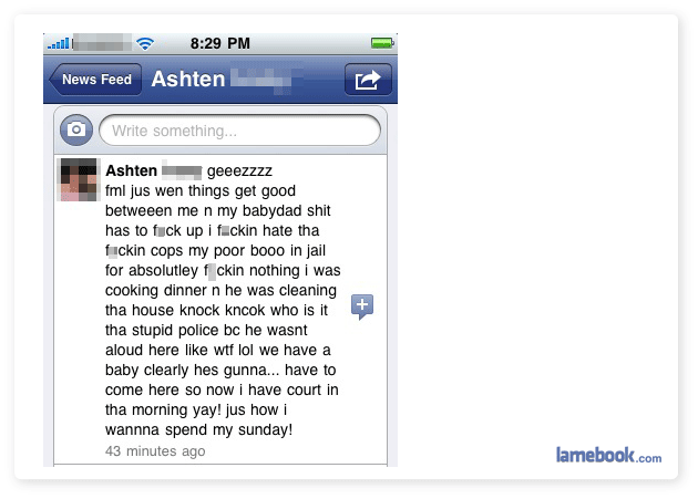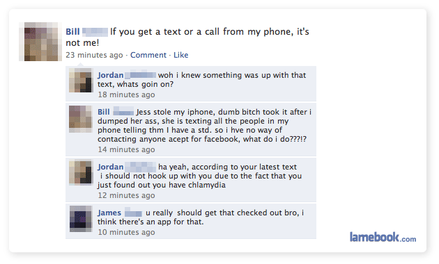 5. I’m only going to reiterate that Lamebook is uber-lame for censoring its posts.