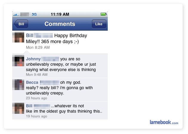 9. Bill’s chances of banging Miley Cyrus will not change even a little bit once she turns 18, so it’s probably not worth thinking about.