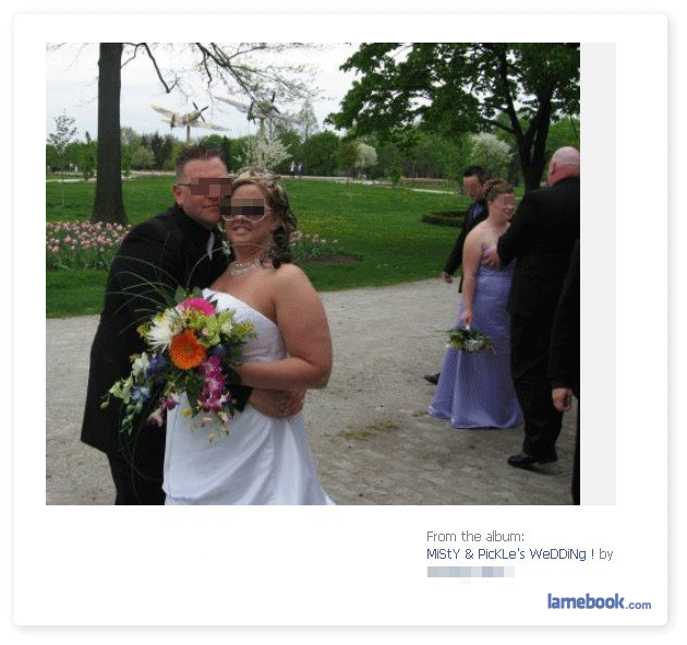 5: I think the bride invited everyone she knew who outweighed her so she could still feel like the belle of the ball. The boob grab is just so out there! Maybe they’re fake and he’s givin’ ’em a test to see how real they feel.