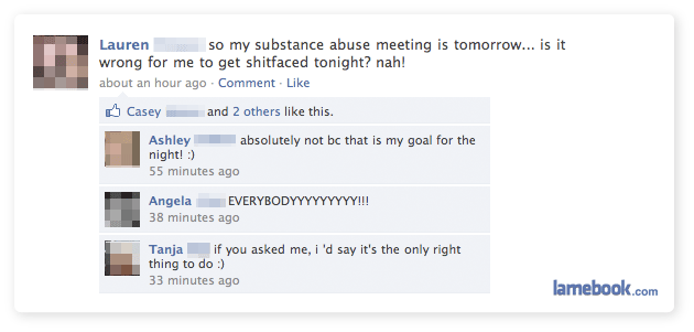 Sure Lauren, get hammered, your substance abuse problem is coke right?
