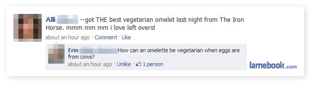 3. I’m a vaginatarian. Humans as a species are meant to eat meat to stay healthy and it’s one of the main reasons why we’ve evolved (except the americans, who haven’t evolved, ever). Veggie-eating bitches are just pretentious idiots, that’s all.
