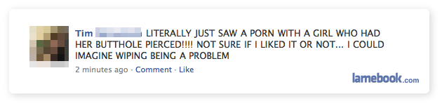 Why, oh why, did I google the butthole piercing? Although the gentleman in the photo had a lovely tattoo to set off his butthole-ring…