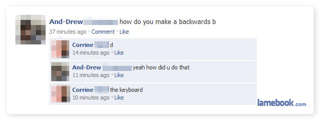 I don’t have a backwards b on my keyboard at all! Corrine must have some wacky foreign hardware.