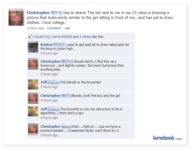 Never mind if Christopher had a laptop or not, who goes through the trouble of drawing a person naked then drawing a bikini on top of the picture?