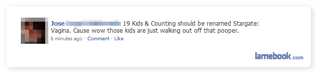 24 – I assumed that joke was an allusion to the 19 Kids and Counting people. That may be giving him too much credit, though.
