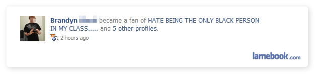 I’m with Brandyn. I just hate being the only black guy in my class.