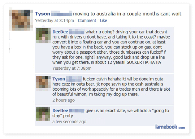 8. fuck this shit I’m out of here. As if lamebook couldn’t get any lamer. On another note I don’t understand the Australia one if someone could explain 🙂