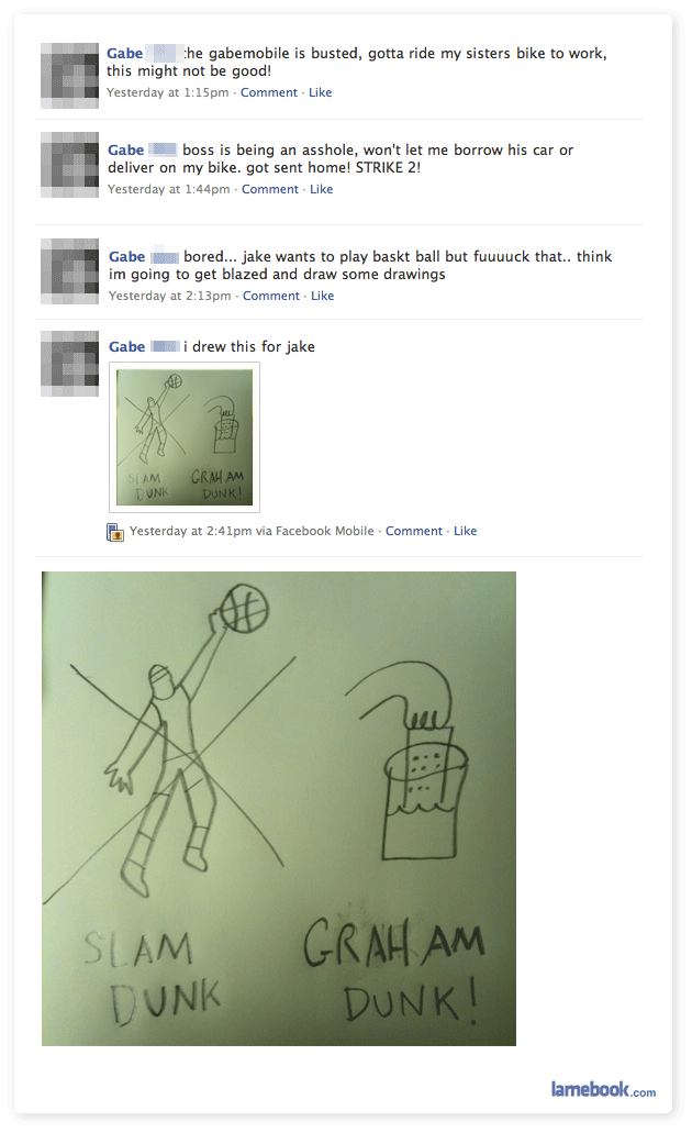 Yeah, I agree. Lamebook should link to Gabe’s profile for further chronicling of his adventures.