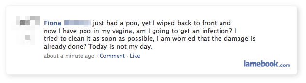 Fiona I’m pretty sure there are a lot of girls out there that wipe back to front and most of them haven’t dropped dead. But the image of poo in vag is gonna make me extra careful next time!