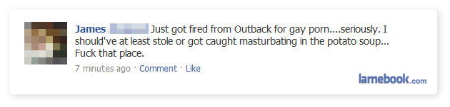 I like how James had to specify that it was gay porn, as though it would be perfectly acceptable to view straight porn while masturbating into the potato soup.