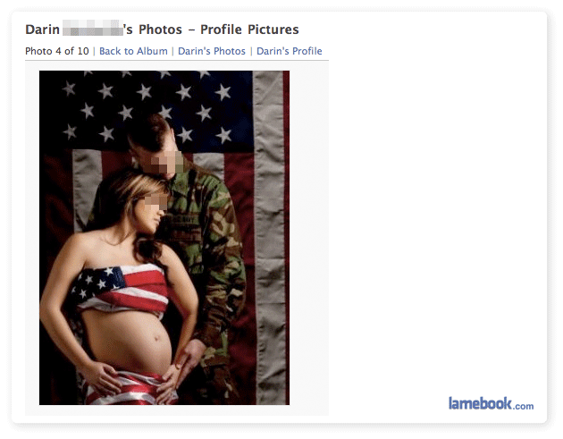 Number 3 is a beautiful picture! You people are morons for saying otherwise! It’s patriotic, she is showing off her PREGNANT stomach, with her soldier husband who fought for our country! WTF is wrong with you people?!