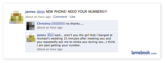 @11 retodd It’s worse than that – to say she could have refused implies James was asking her specifically. It looks like a status update from James that she just decided to comment on to say no. She’s an asshole, even if James is lying.