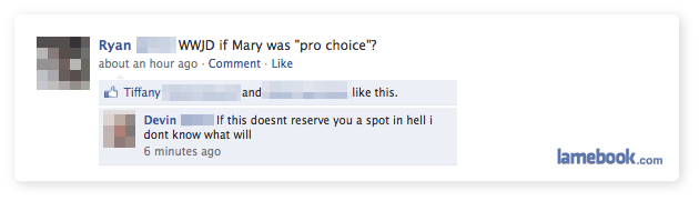 Whoa, and the religious nuts come out to play. I gotta put this out there, why (other then for my eternal entertainment) do these people have enemies on their friends list? Is it some sort of fun to have someone who obviously hates you able to post comments on all your posts? I’m not saying stop, it’s only too hilarious. Just tell me why?