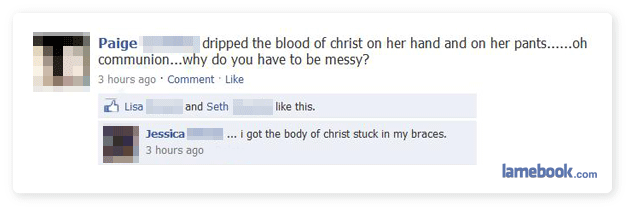 as for the others, they weren’t even funny. they should think before saying dumb shit like that coz its creepy, even if ur not religious….it just feels wrong.