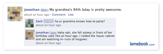 I had a status once where, after a couple of comments, someone randomly said that her dog died. I had to refrain from asking if she “actually just did that” out of pure disbelief that I know someone as lame as that. People who randomly spew out “so-and-so is dead” should not be allowed to comment. What wet blankets.