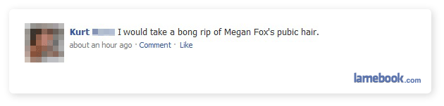 I’d certainly take a bong rip of Megan Fox’s pubes. Damn straight, she’s amazing.