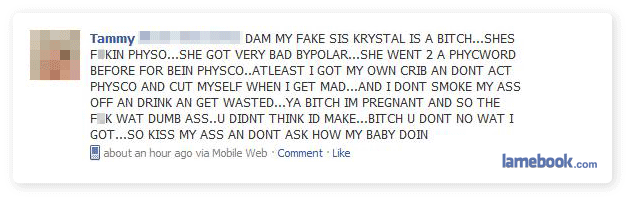 and retards. Thank you lamebook for making me dumber just by reading other people’s stupidity. =]