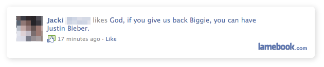 By which I mean quickly and ruthlessly. Enjoy this shit while you can, Bieber. You just wait for the next average-lookin’ average-singin’ teenager, then you’ll be desperate for whatever attention you can get.