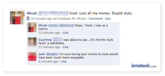 Micah, you don’t need to use derogatory terms like slut to describe prostitutes. They have feelings too. Your referencing to the chance of getting HIV with slots was ok though.