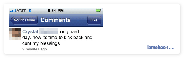 Wow Lamebook is fast with the submissions! My sister submitted the c*unt one last night!
