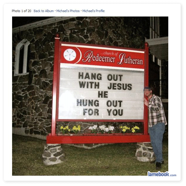 That’s a dig at church youth groups by the way, not Christianity in general. Christians are fine by me, unless they’re burining the Qu’ran to protest intolerance. Then they’re just too fucking dumb to live.