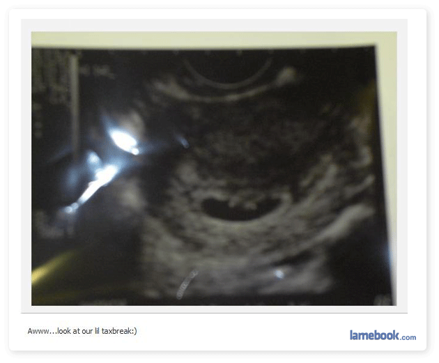 The scan one is actually pretty funny if it is a joke i.e, I would laugh if one of my sane and responsible (but also funny) friends wrote it under their scan pic. In the same way that I would laugh if a friend put their kid in a babygro that said ‘All Daddy wanted was a blow job’ (but only if they didn’t leave the house).