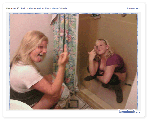 I’ll never understand why fat, drunk bitches take pictures while they are going to the bathroom, much less post these pictures on Facebook. I have considered they untagged themselves, but I have seen too many where they weren’t untagged. My old friend had it as her profile picture for awhile. It’s not cute.
