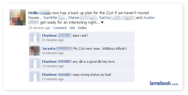How do you comment on the wrong status? I know new Facebook makes no sense whatsoever, but that’s still some crazy skills there. Especially with a comment like that.
