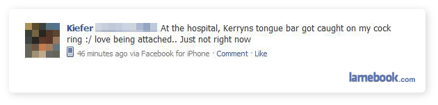 yeah…i know how kiefer feels, thats happened to me 5 times, three of them we were able to unscrew it…the other two…well that was awkward asking her parents for a ride to the ER