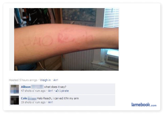 I normally would never make light of mental illness, but I simply can’t take this seriously. Telling us about a cutting scenario and hospital visit on a Lamebook thread (that was the apparent catalyst for said events) is just fucking bullshit.