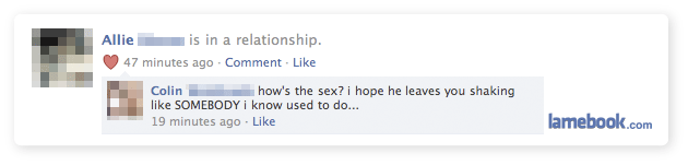 Poor Colin is missing Allie’s new lover, back when the dude was Colin’s. Get over it Colin, some guys only like bangin Colin’s colon til a hot little Allie comes along.