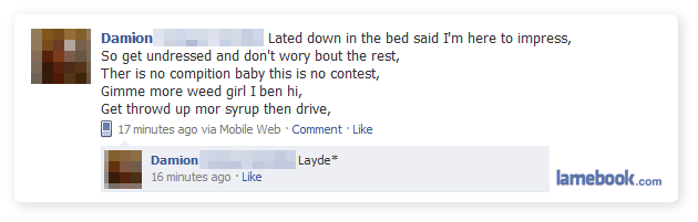 Poor Damion, from the moment his parents named him he was destined to be a regular contestant on Lamebook’s TypeOH section…