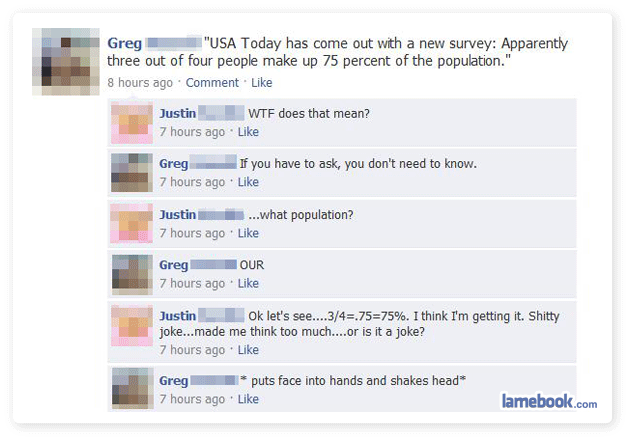 how the heck did the last of these comments have nothing to do with anything? oh lamebook, you bamboozle me once again..