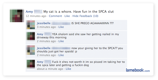 God Amy is a dumb fucking whore. Of course your cat is going to get pregnant multiple times if you’re not going to get her neutered! As for just dumping her cat… jesus fucking christ. She’s the one who needs to be fixed so she can NEVER pro-create.