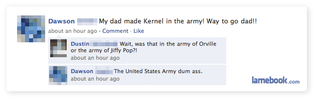 Man, Self-Submitters aren’t that bad. Unless is an active submiter in the Fail/Win, I don’t see the problem of refering Lamebook. Most of the submissions are from friends of the person anyway!
