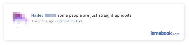 Whenever I see somebody make what they thing is a hilarious comment, then submit it to Lamebook, as we can see with their comment having the ‘delete’ button, I always start to wonder whether it’s a regular contributor on here. Is it me, supplying myself with lame material to get pissed over?