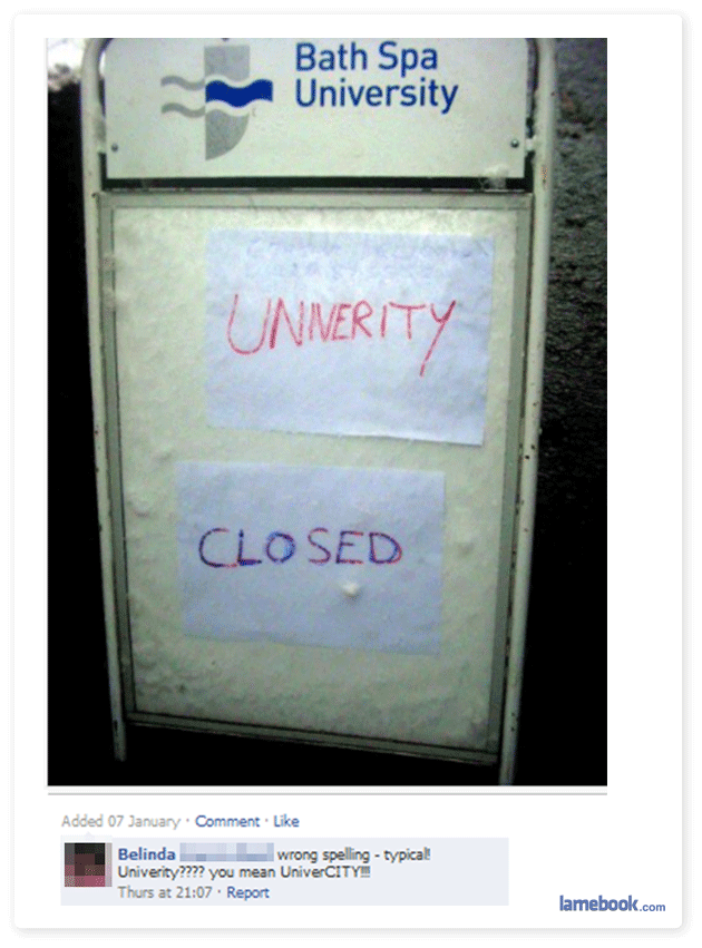 Also, if she thinks it’s spelled UniverCITY then she doesn’t realize that the correct spelling is up above. She probably thinks that is wrong too.