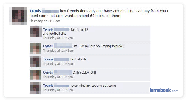 So if Travis thinks that clits are cleats, does that mean he thinks cleats are clits? Hey Travis, Lick my cleat!
