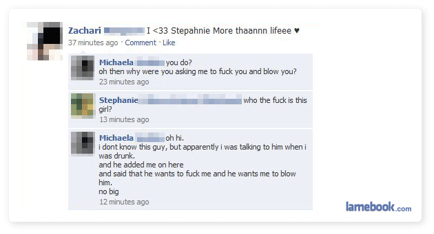 Up until the last line I figured he’d been (ugh…) ‘fraped’ by his pissed-off girlfriend.