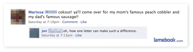 1. “dad’s famous sausage” has a meaning of itself. It goes well with the typo.