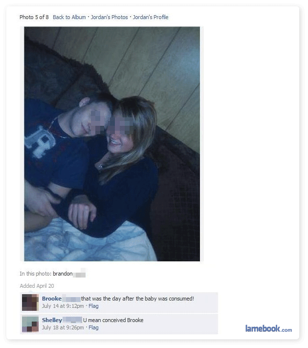 4. if the baby was consumed, perhaps not something you should to share with our judgemental world, some people might not get that. if the baby was indeed concieved, then who on earth cares/wants to know? lame.