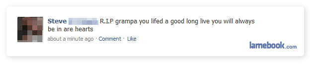 Steve’s isn’t that funny… He just lost his grandpa, get off of his back about spelling
