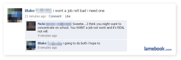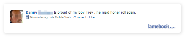Danny’s looks ‘shopped. The font changes…is Lamebook being lame again, or are the submitters that desperate that they are modifying the FB updates?