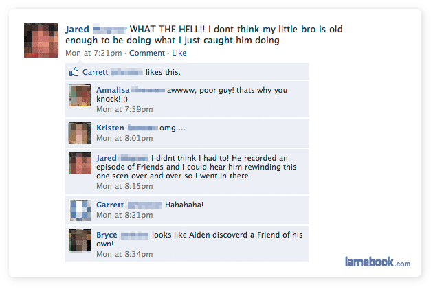 9. in this day and age filled with porn the lil’ boy is frapping away on … friends ?